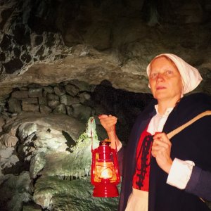 Mitten im Wald beginnen die stimmungsvollen Laternenreisen durch den Iberg. „Begleitet von unserer Bad Grundner Kiepenfrau und unserem Harzer Bergmann geht es, die Laternen in der Hand, in die Tiefe des Berges“, beschreibt die Leiterin des HEZ, Dr. Brigitte Moritz, den Beginn dieser schön inszenierten Kostümführung.